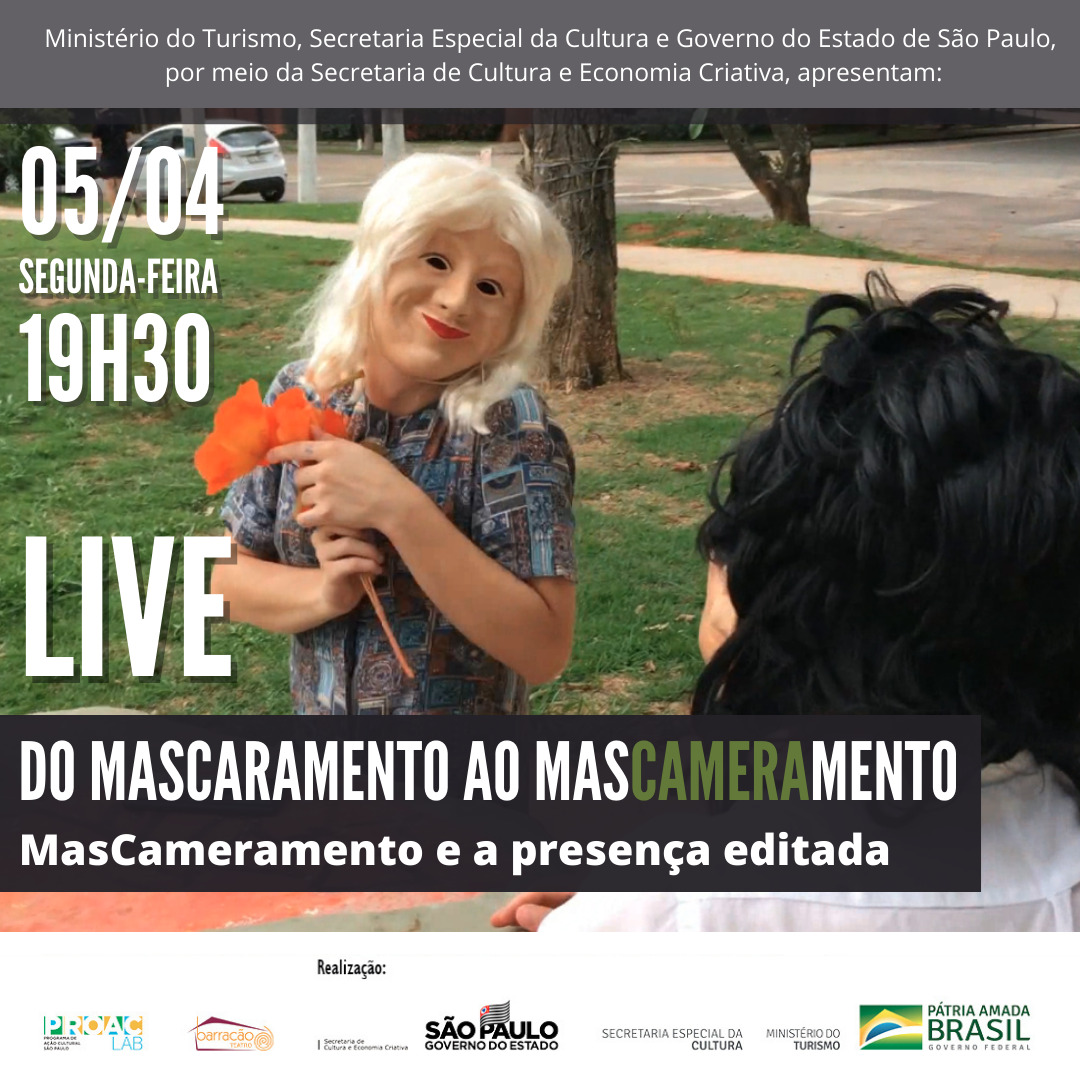 Projeto: Do Mascaramento ao MasCameramento, contemplado pelo Programa de Apoio Cultural Expresso Lei Aldir Blanc Eixo Premiação Teatro no estado de São Paulo, da Secretaria de Cultura do Governo do Estado de São Paulo.